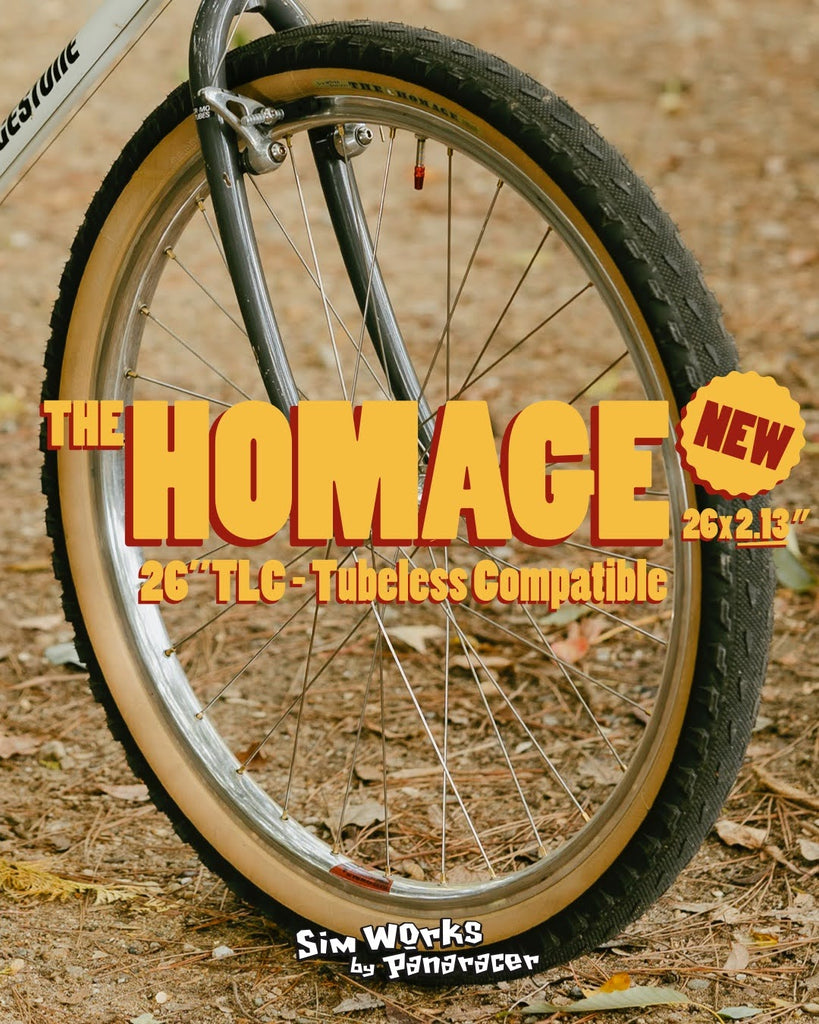 The HOMAGE Tire —nicknamed Homage— was the first model released under SimWorks by PANARACER. Starting with 43c sizes in 700 and 650, it has been updated over time to match changing eras and riding styles, supporting both everyday rides and long journeys.