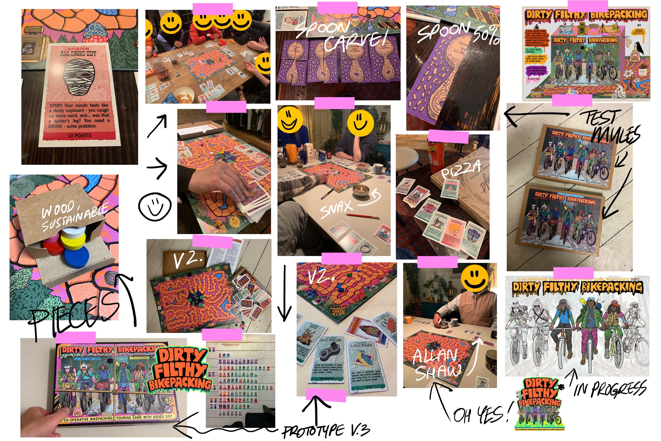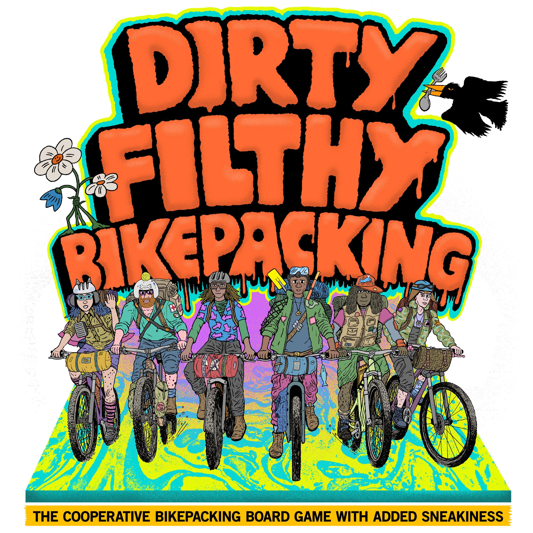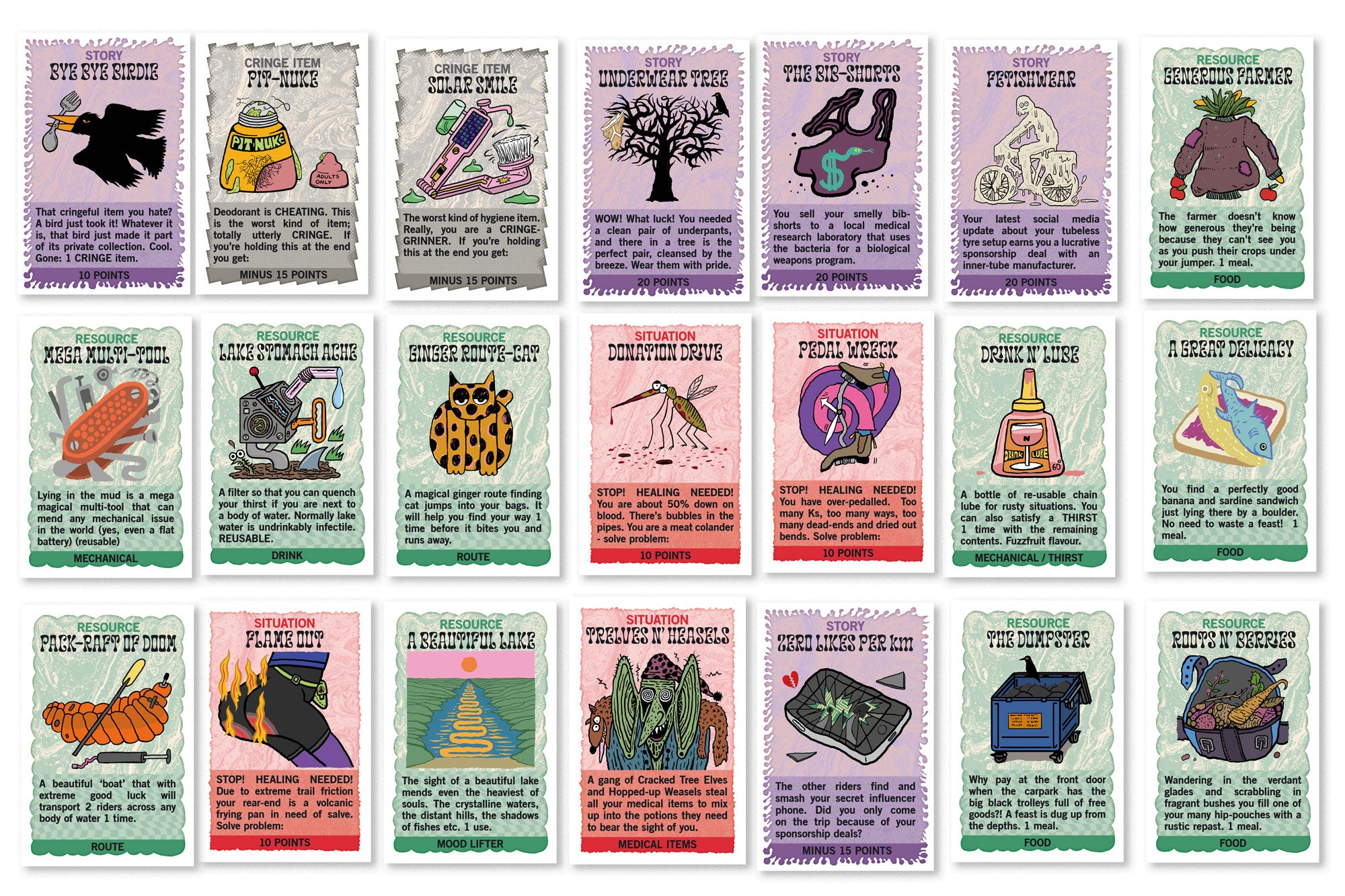 With the help of my own long-suffering group of crazy bikepacker friends and many hours of extremely fun games testing and designing I am happy to launch this little pedal swan into the choppy waters. This is a crazy and chaotic game that captures the fun, filth and freaky times of bikepacking.