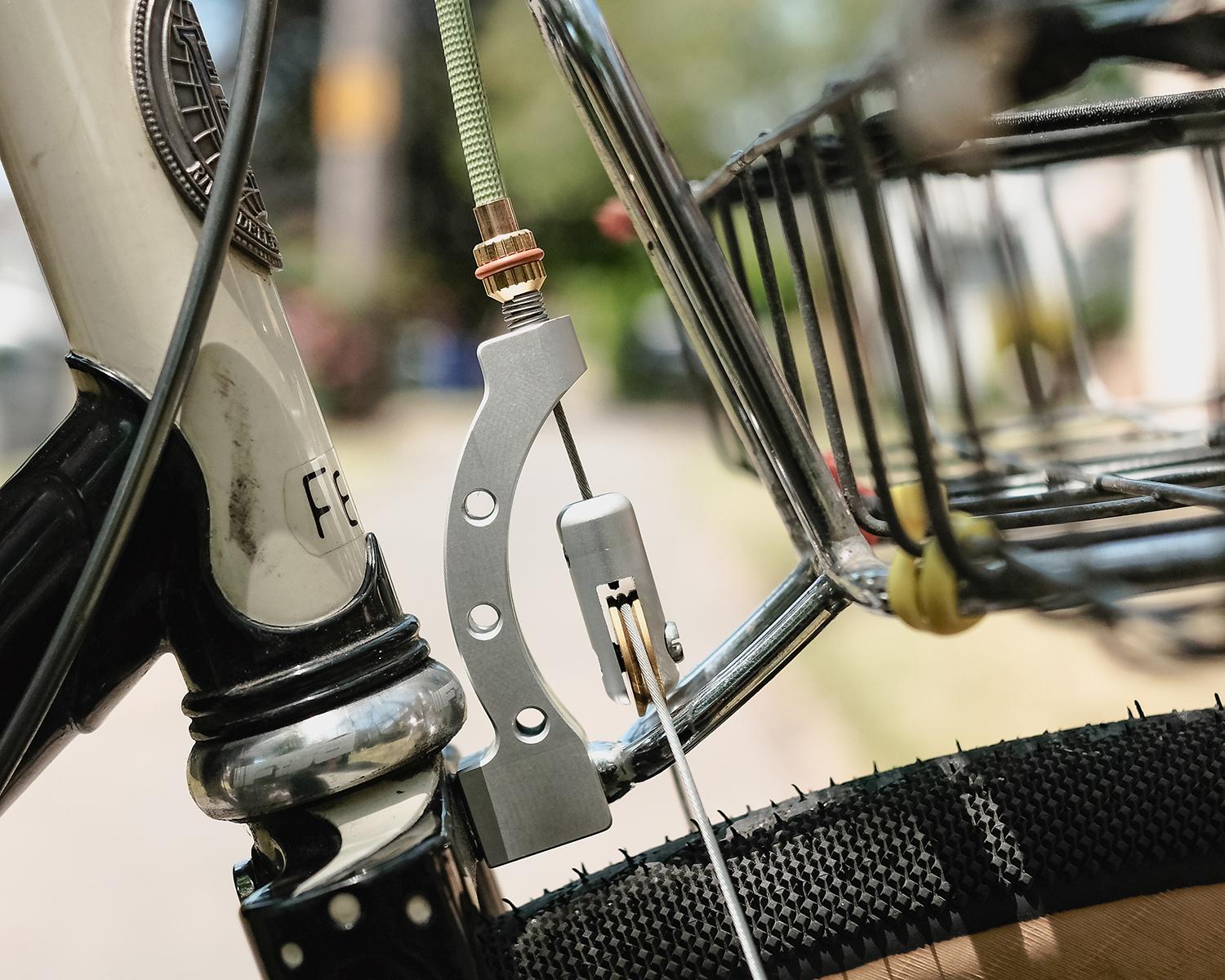 SHOVEL RESEARCH is a small machine shop based in Portland, Oregon, run by SAL, a designer who excels at creating niche products for the bike industry. The cable hanger was specifically designed to work with aftermarket forks, providing a solution for wide-profile cantilever brake setups.