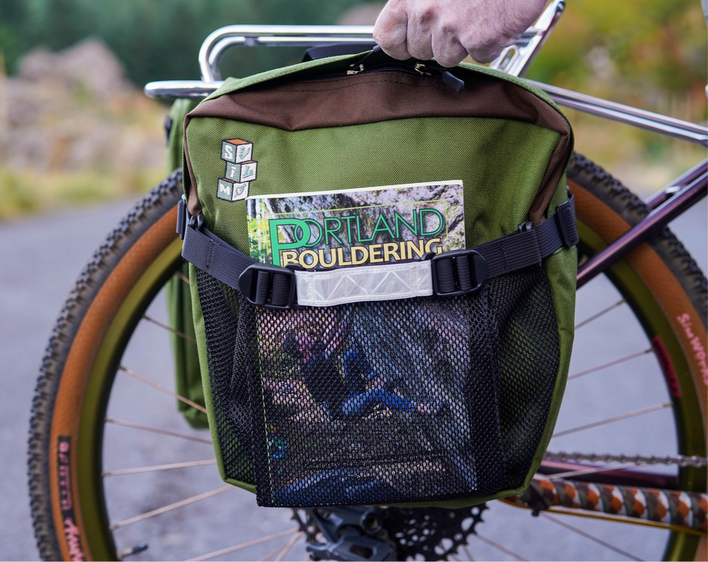 Hand constructed here in Portland, OR of premium materials- these bags when used on their own or in conjunction with one another, open up limitless opportunities for venturing off the beaten path with your bike and bringing along all of your necessary solutions to adventure with confidence.