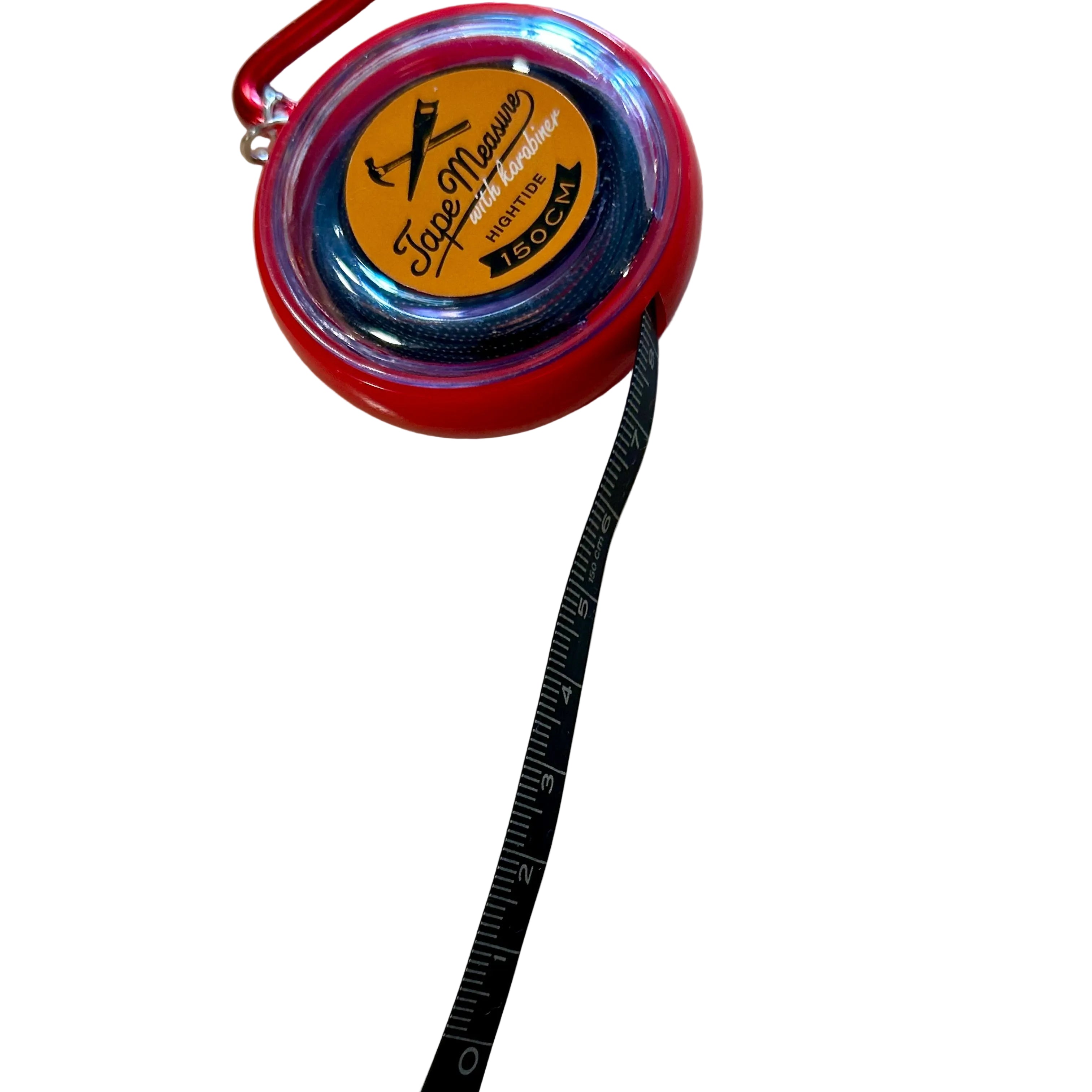 We know you're always looking for a metric tape measure! This one is a locking tailor style tape measure with silver print on a black tape. It comes with a tiny karabiner so you can keep it on your belt or your keys. You'll never have to guess what size something is ever again.